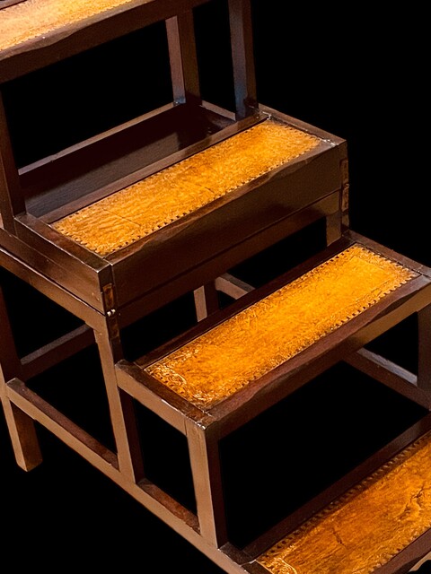 An English Antique Metamorphic leather and Mahogany Library Steps / Coffee Table. Very nice patina.