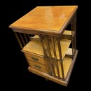 An English Arts and Crafts Oak Revolving Bookcase having two drawers. Metal Base.