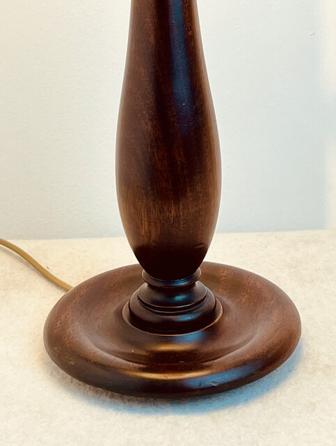 An English Early 20th Century Mahogany Lamp Stand having a Handmade Linen Shade. Special Price 250 €.